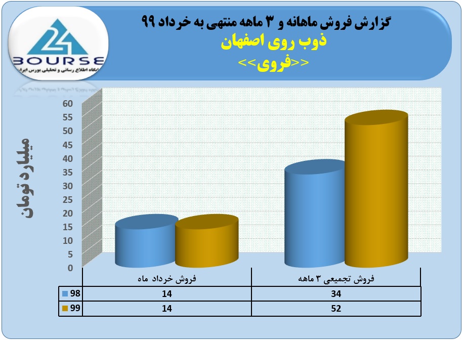 به گزارش کدال نگر بورس ٢۴ ،شرکت ذوب روی اصفهان در ٣ ماهه منتهی به خرداد ١٣٩٩ از فروش محصولات خود حدود ۵٢ میلیارد تومان درآمد کسب نمود که از این مبلغ ١۴ میلیارد تومان آن مربوط به همین ماه می باشد. گفتنی است مبلغ فروش این شرکت در مدت ٣ ماهه سال ٩٩ در مقایسه با مدت مشابه سال قبل ۵٣ درصد رشد داشته است.