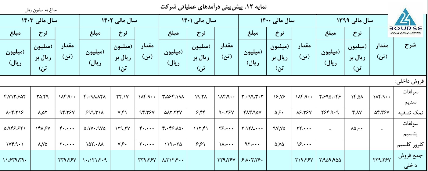 نکته بسیار مهم در خصوص طرح سولفات پتاسیم پیشبینی شرکت مبنی بر اضافه شدن تولیدات این شرکت به سبد فروش در سال 1400 می باشد که نیمی از فروش داخلی شرکت را به خود اختصاص داده و وزن سنگینی در سبد شرکت خواهد داشت.