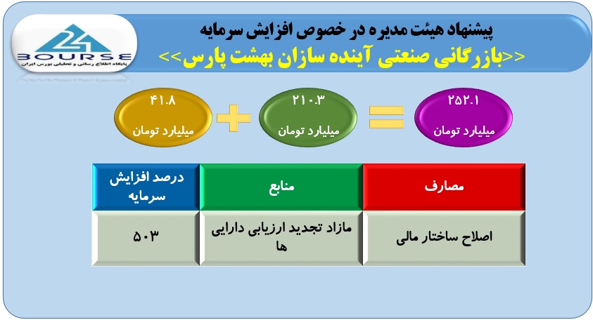 به گزارش کدال نگر بورس ٢۴، هیئت مدیره شرکت بازرگانی صنعتی آینده سازان بهشت پارس افزایش سرمایه ۵٠٣ درصدی این شرکت از محل مازاد تجدید ارزیابی دارایی ها را تصویب نمود.