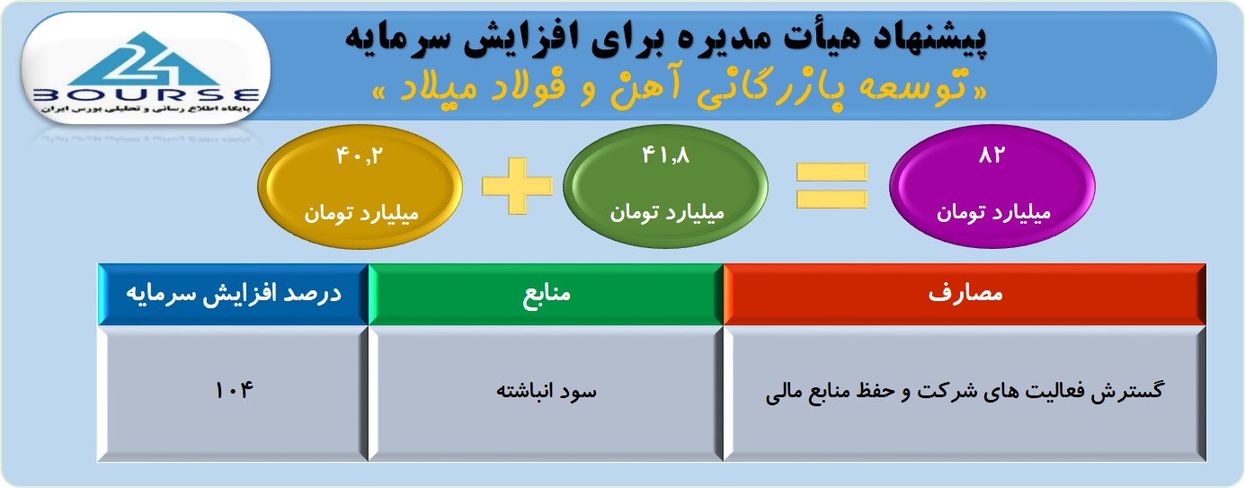به گزارش کدال نگر بورس ٢۴، هیأت مدیره توسعه بازرگانی آهن و فولاد میلاد افزایش سرمایه ١٠۴ درصدی این شرکت از محل سود انباشته را به تصویب رساند.