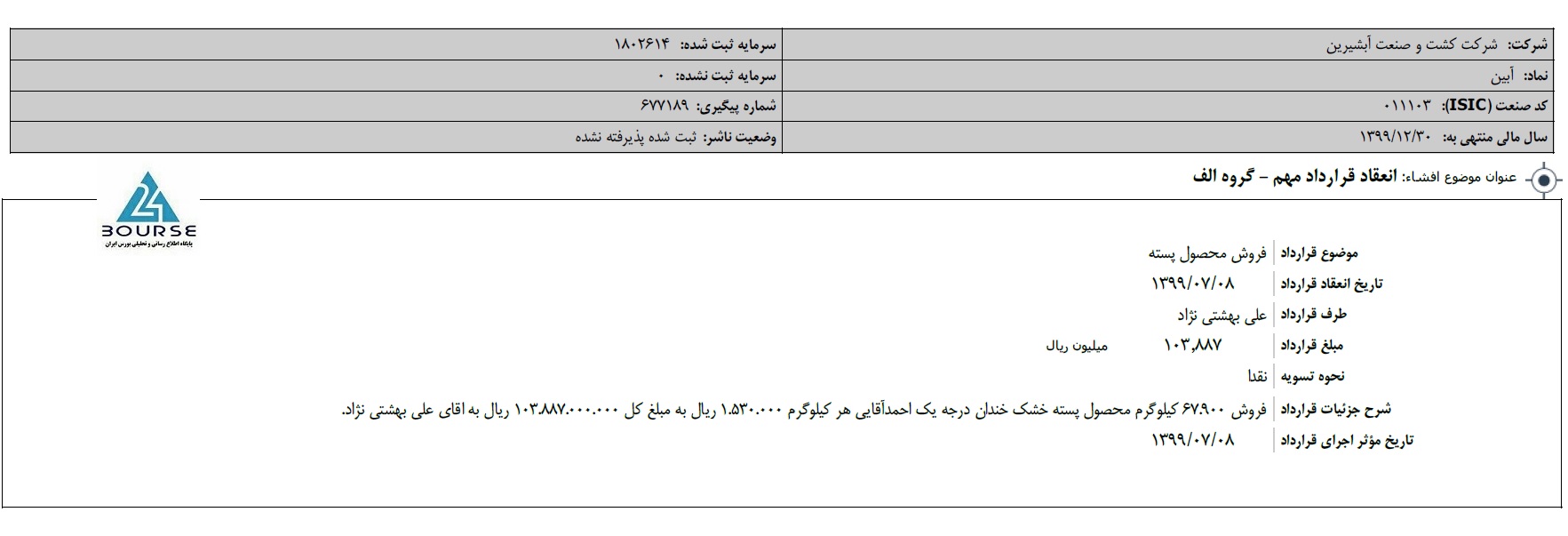 کشت و صنعت آبشیرین قرارداد فروش پسته بست