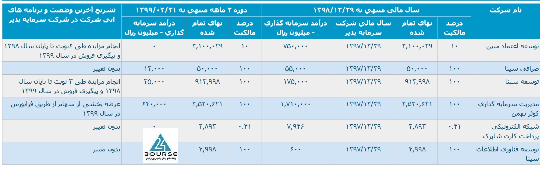 بانک سینا در پرتفوی سرمایه گذاری خود 2 شرکت بسیار مهم دارد: