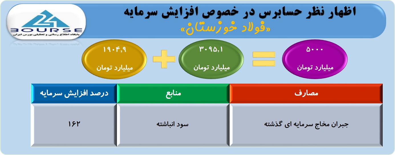 به گزارش کدال نگر بورس ٢۴، حسابرس و بازرس قانونی شرکت فولاد خوزستان افزایش سرمایه ١۶۴ درصدی این شرکت از محل سود انباشته را تایید نمود.