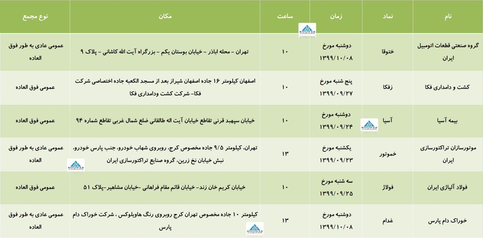به گزارش کدال نگر بورس ٢۴، چند شرکت سهامداران خود را برای حضور در مجمع دعوت نمودند.