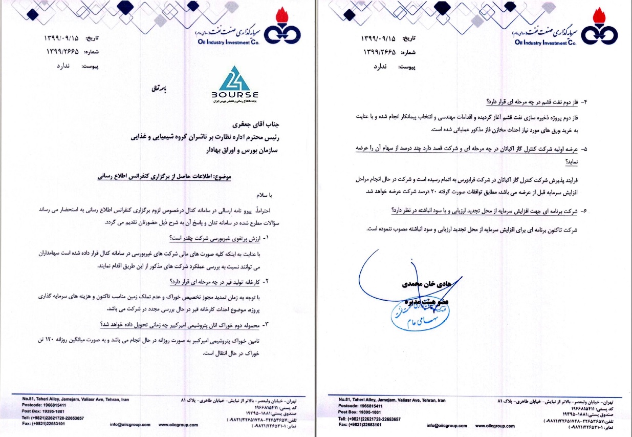به گزارش کدال نگر بورس ٢۴، شرکت سرمایه گذاری صنعت نفت در خصوص وضعیت عرضه اولیه شرکت کنترل گاز اکباتان، فاز دوم نفت قشم و ... توضیح داد.