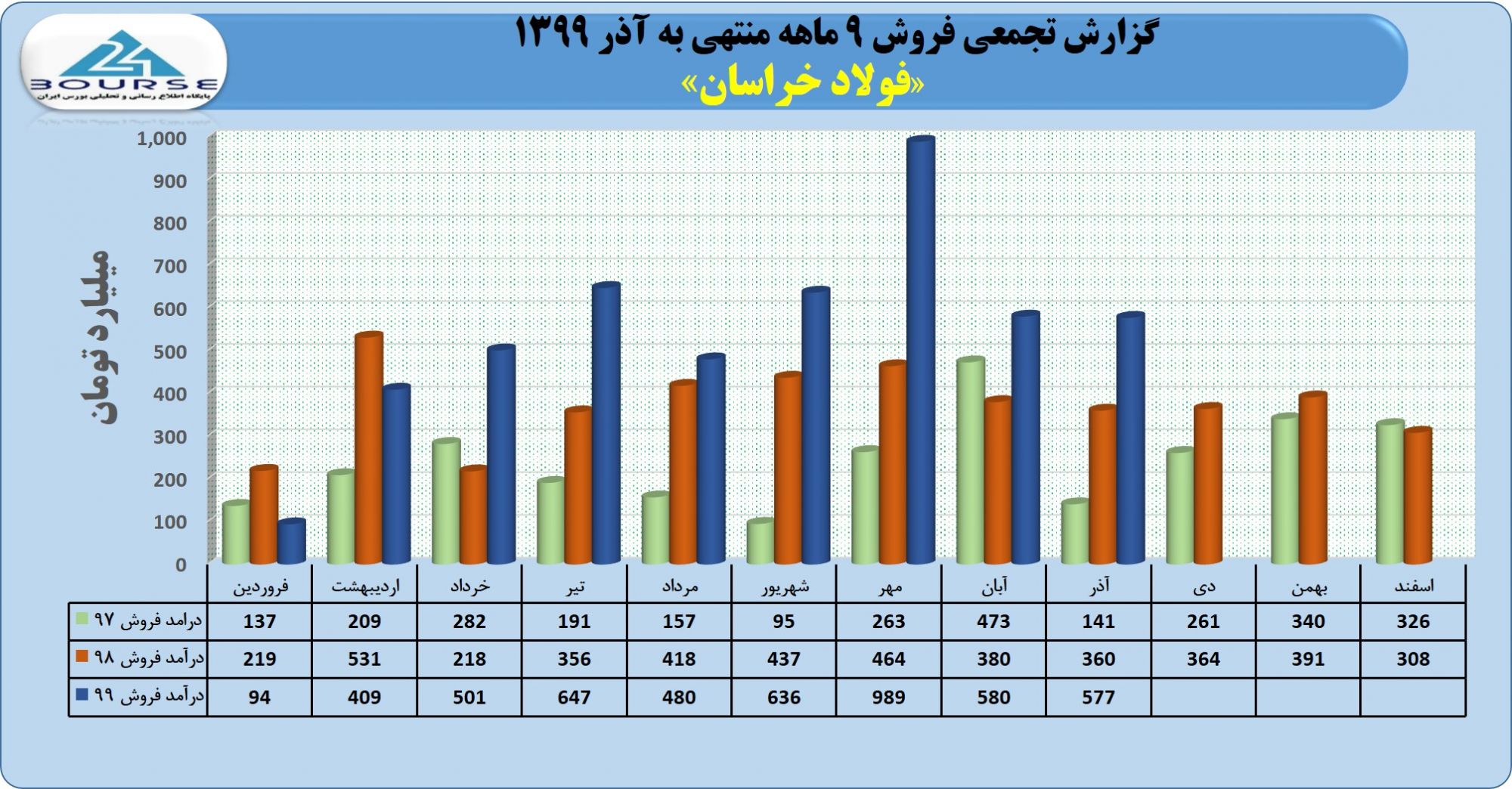 به گزارش کدال نگر بورس ٢۴، شرکت فولاد خراسان در مدت ٩ ماهه منتهی به اذر سال جاری حدود ۴٩٣١ میلیارد تومان درآمد کسب نمود.