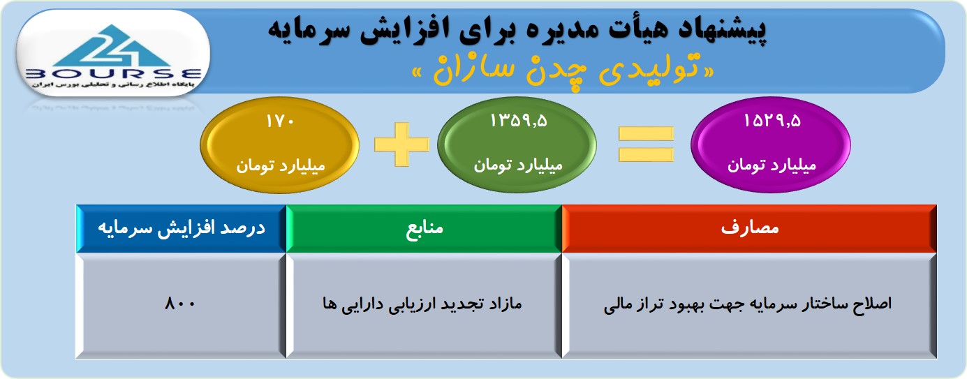 به گزارش کدال نگر بورس ٢۴، هیأت مدیره تولیدی چدن سازان افزایش سرمایه ٨٠٠ درصدی این شرکت از محل مازاد تجدید ارزیابی دارایی ها را به تصویب رساند.