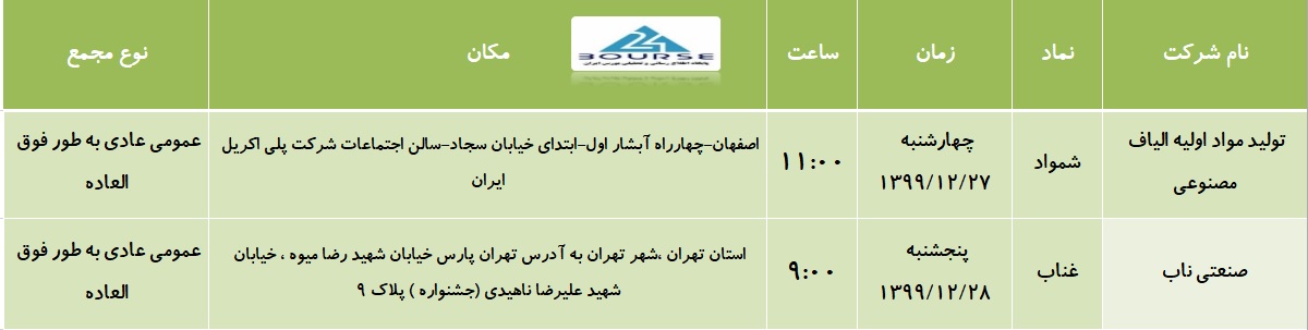 به گزارش کدال نگر بورس ٢۴، این شرکت ها سهامداران خود را برای شرکت در مجمع دعوت کردند.