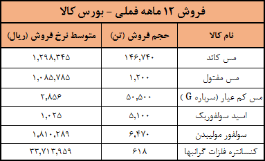 بورس24 : شرکت ملی صنایع مس ایران طی 12 ماهه سال جاری مجموعا 210,628 تن انواع تولیدات خود را در رینگ فلزات بورس کالا عرضه کرد که فروش اصلی شرکت با سهم 70 درصد به کاتد مس اختصاص داشته است.