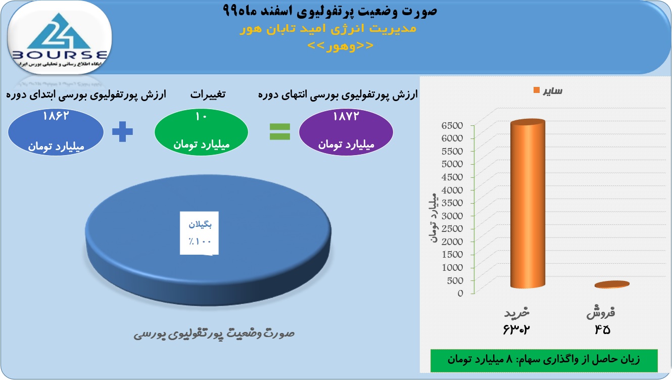 به گزارش کدال نگر بورس ٢۴،ارزش پرتفوی مدیریت انرژی امید تابان هور در اسفند ماه افزایش ١٠ میلیاردی داشت.