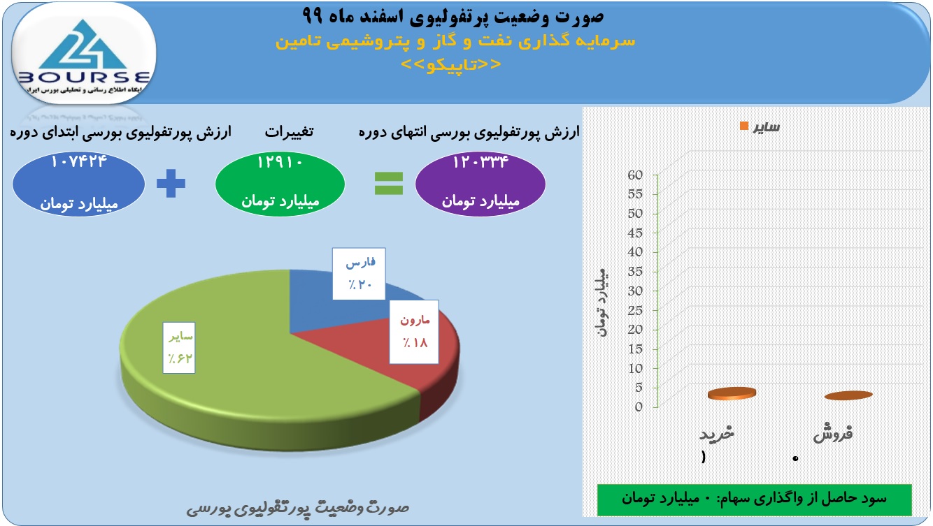 به گزارش کدال نگر بورس ٢۴،ارزش پرتفوی سرمایه گذاری نفت و گاز و پتروشیمی تامین در اسفند ماه افزایش ١٢٩١٠ میلیاردی داشت.