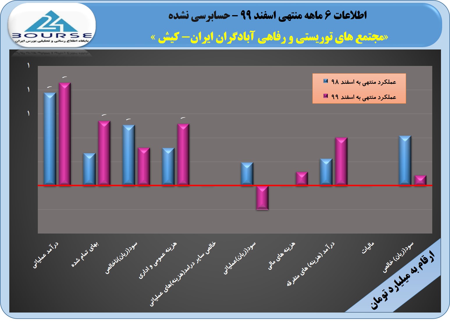 به گزارش کدال نگر بورس ٢۴ شرکت مجتمع های توریستی و رفاهی آبادگران ایران- کیش در ۶ ماهه منتهی به اسفند ٩٩ برای هر سهم ٧ ریال سود محقق کرد که به نسبت دوره قبل کاهش ٧٩ درصدی داشته است.