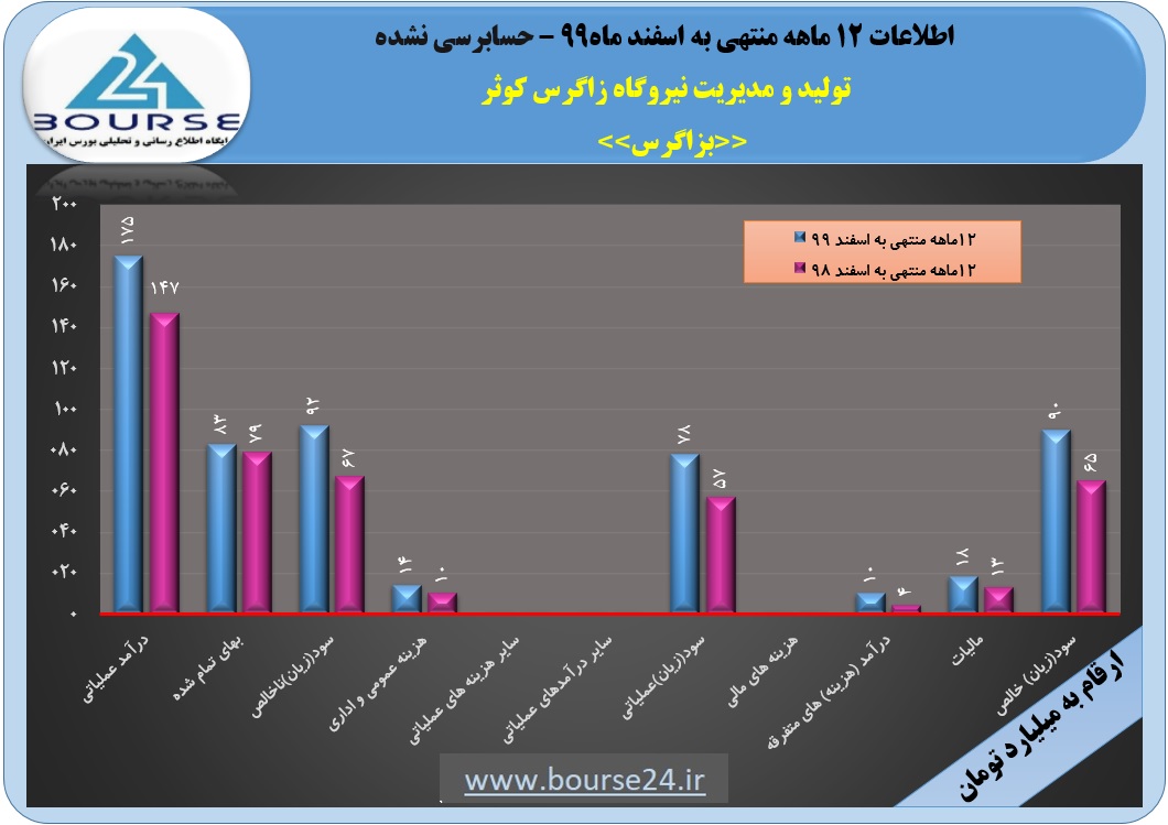 به گزارش کدال نگر بورس ٢۴، شرکت تولید و مدیریت نیروگاه زاگرس کوثر در ١٢ ماهه منتهی به اسفند ٩٩ برای هر سهم ١۵٠ ریال سود محقق کرد که به نسبت دوره قبل رشد ۴٠ درصدی داشته است.