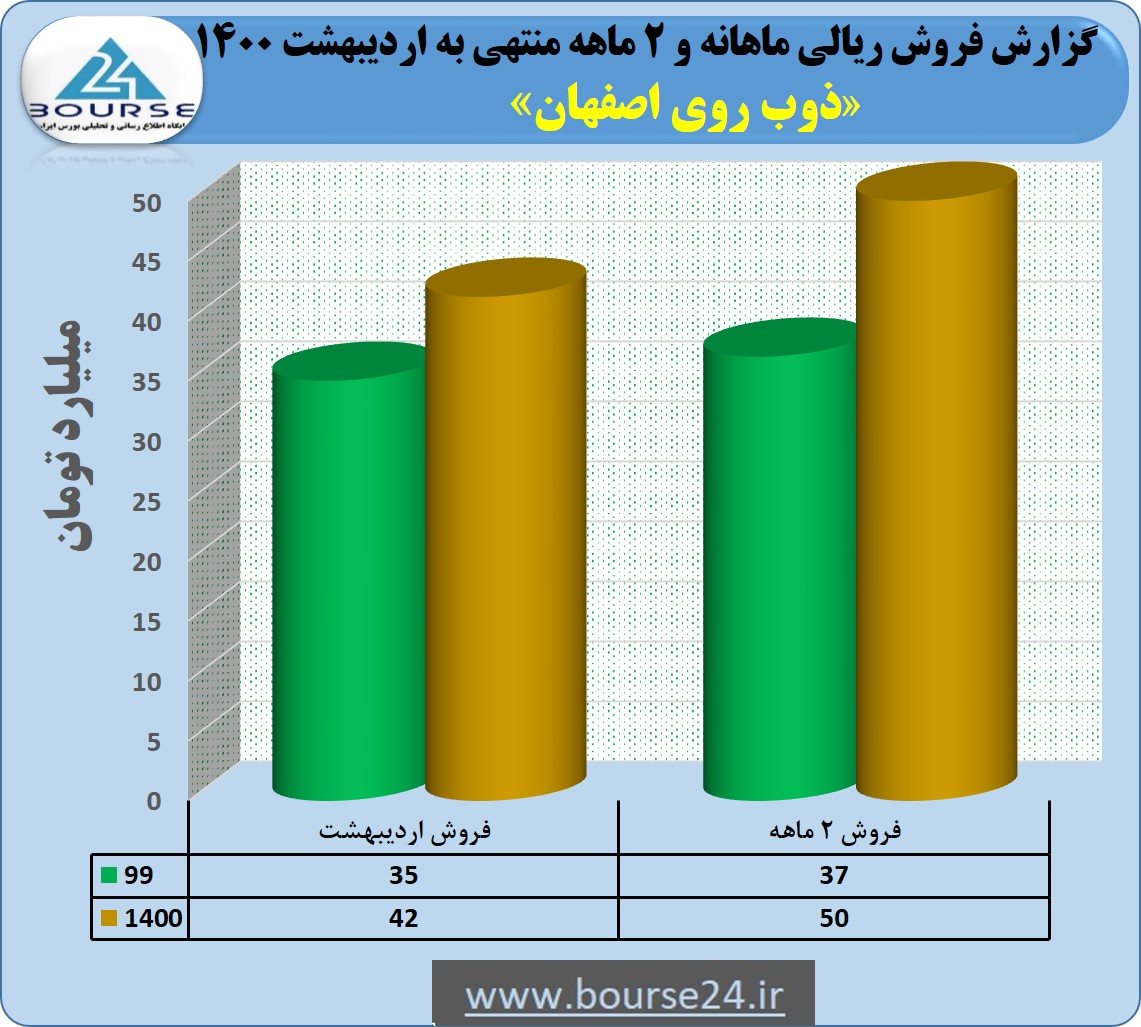 به گزارش کدال نگر بورس ٢۴ ، شرکت ذوب روی اصفهان در ٢ ماهه سال جاری از فروش محصولات خود ۵٠ میلیارد تومان درآمد کسب نمود که از این مبلغ ۴٢ میلیارد تومان آن مربوط به همین ماه می باشد. گفتنی است مبلغ فروش این شرکت در مدت ٢ ماهه در مقایسه با مدت مشابه سال قبل ٣۵ درصد رشد داشته است.