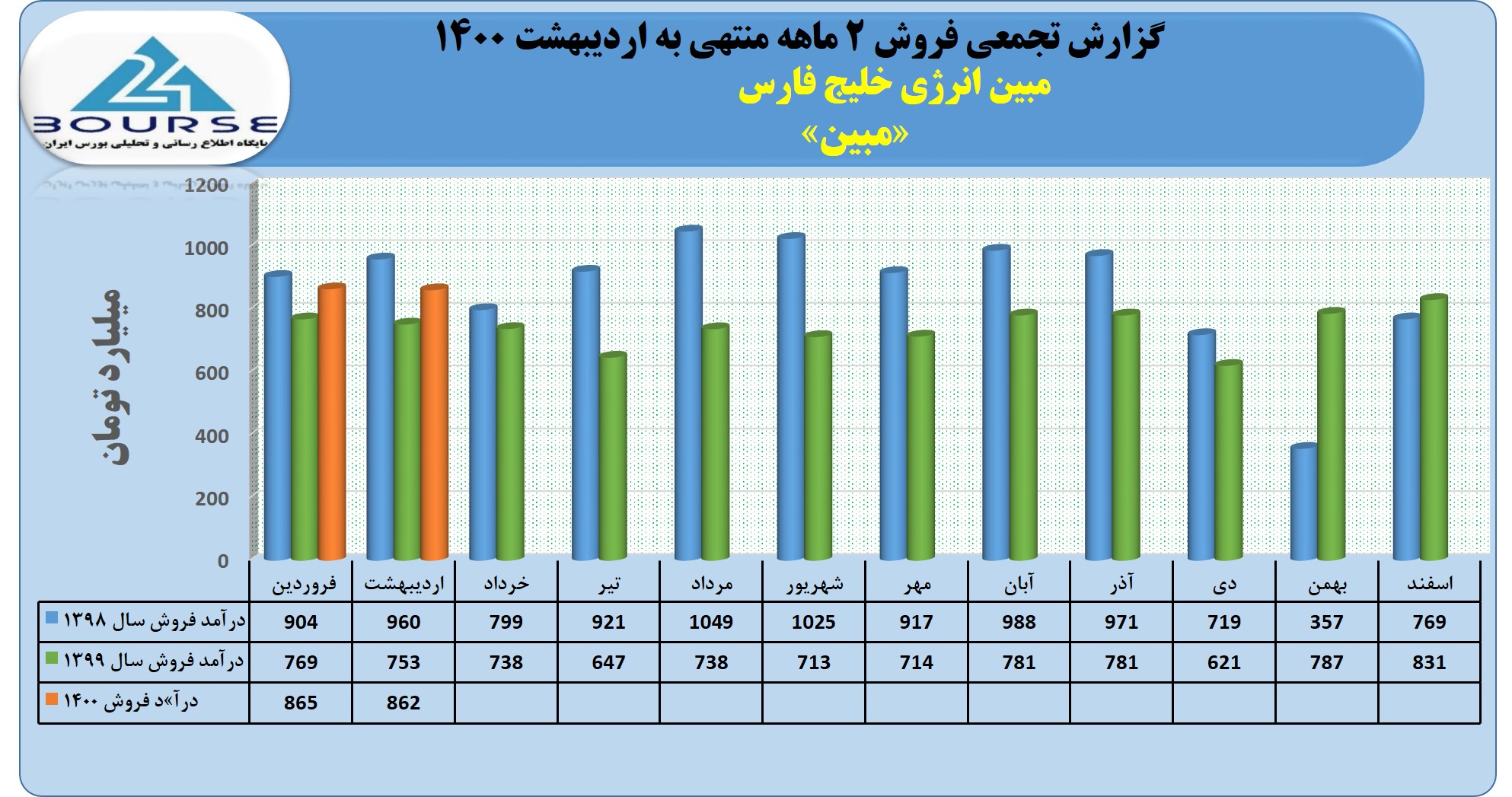 به گزارش کدال نگر بورس ٢۴، شرکت مبین انرژی خلیج فارس در مدت ٢ ماهه منتهی به اردیبهشت ١۴٠٠ حدود ١٧٢٧ میلیارد تومان درآمد از فروش محصولات خود به دست آورد.