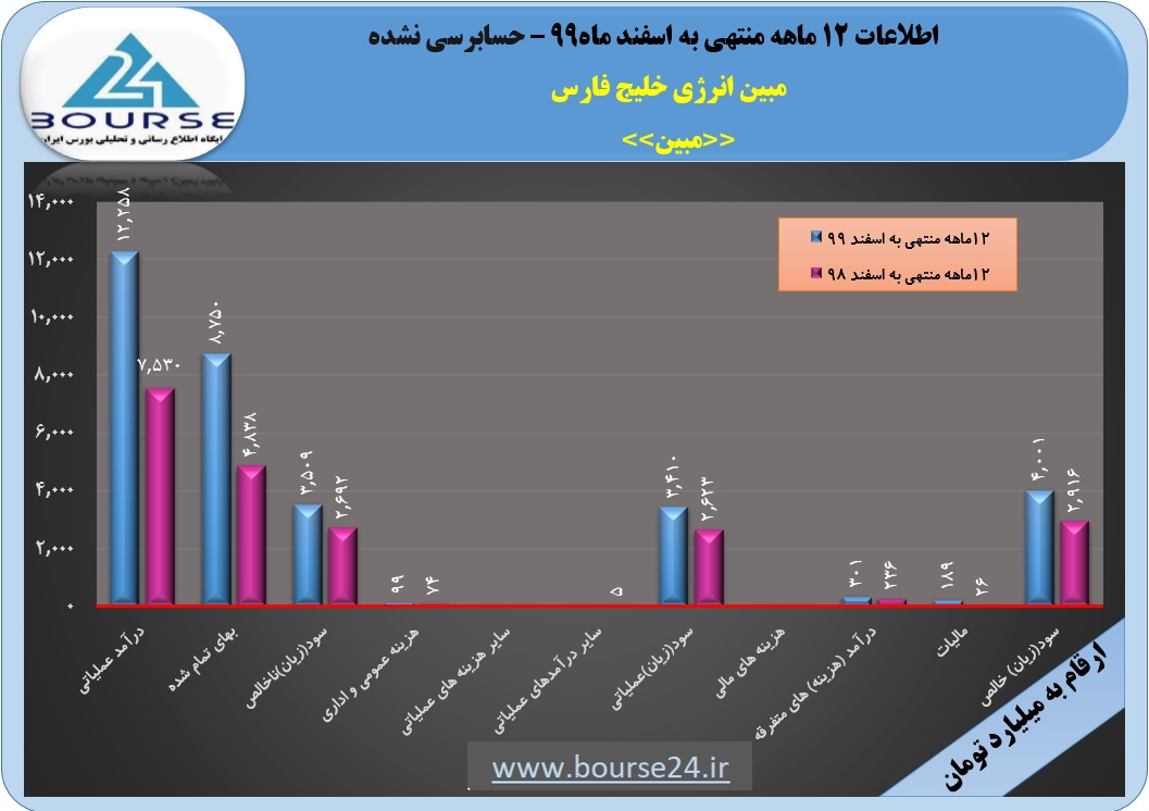به گزارش کدال نگر بورس24 ،مبین انرژی خلیج فارس در 12 ماهه منتهی به اسفند 99 برای هر سهم 1977 ریال سود محقق کرد که به نسبت دوره مشابه قبل رشد 37 درصدی داشته است.