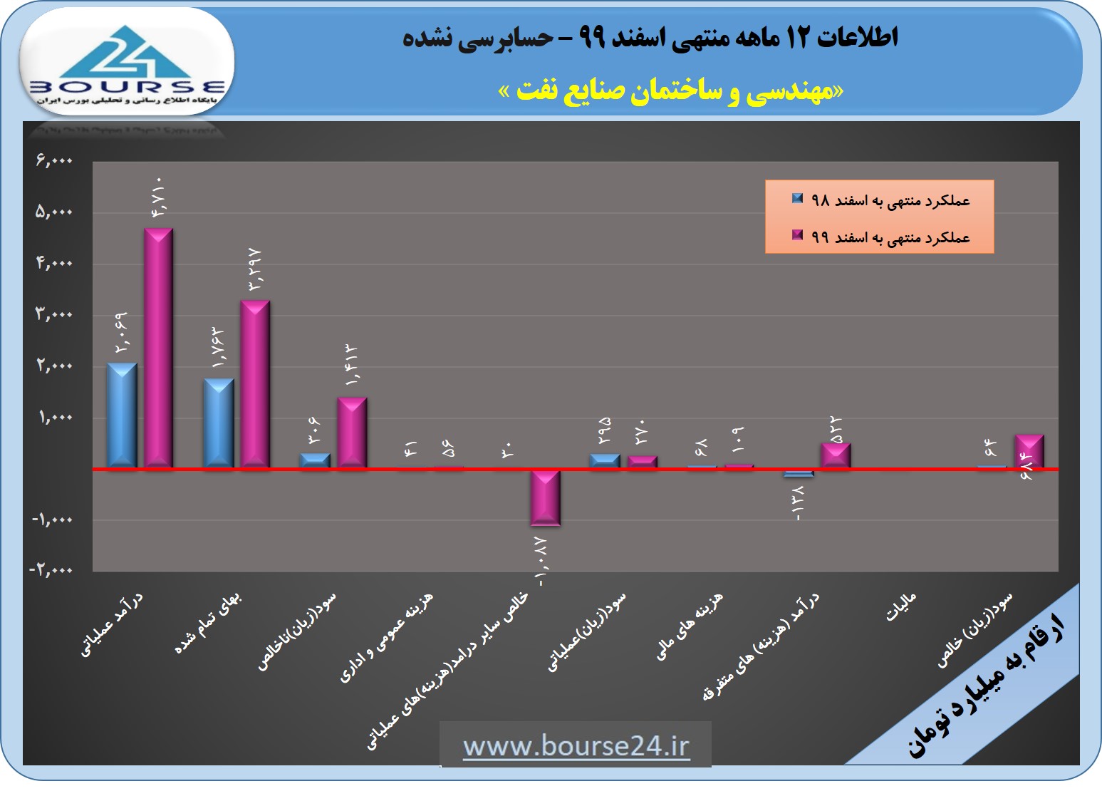 به گزارش کدال نگر بورس24 ، شرکت مهندسی و ساختمان صنایع نفت در 12 ماهه منتهی به اسفند 99 برای هر سهم 2713 ریال سود محقق کرد که به نسبت دوره قبل رشد 960 درصدی داشته است.