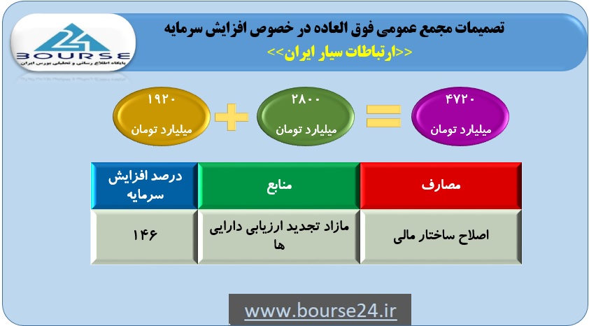 به گزارش کدال نگر بورس ٢۴، مجمع شرکت ارتباطات سیار ایران افزایش سرمایه ١۴۶درصدی از محل مازاد تجدید ارزیابی دارایی ها را تصویب کرد.