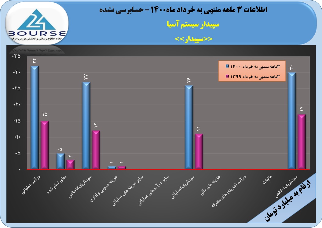 به گزارش کدال نگر بورس ٢۴ شرکت سپیدار سیستم آسیا در ٣ ماهه منتهی به خرداد برای هر سهم ۴٣١ ریال سود محقق کرد که نسبت به مدت مشابه قبل رشد ٧٩ درصدی داشته است.