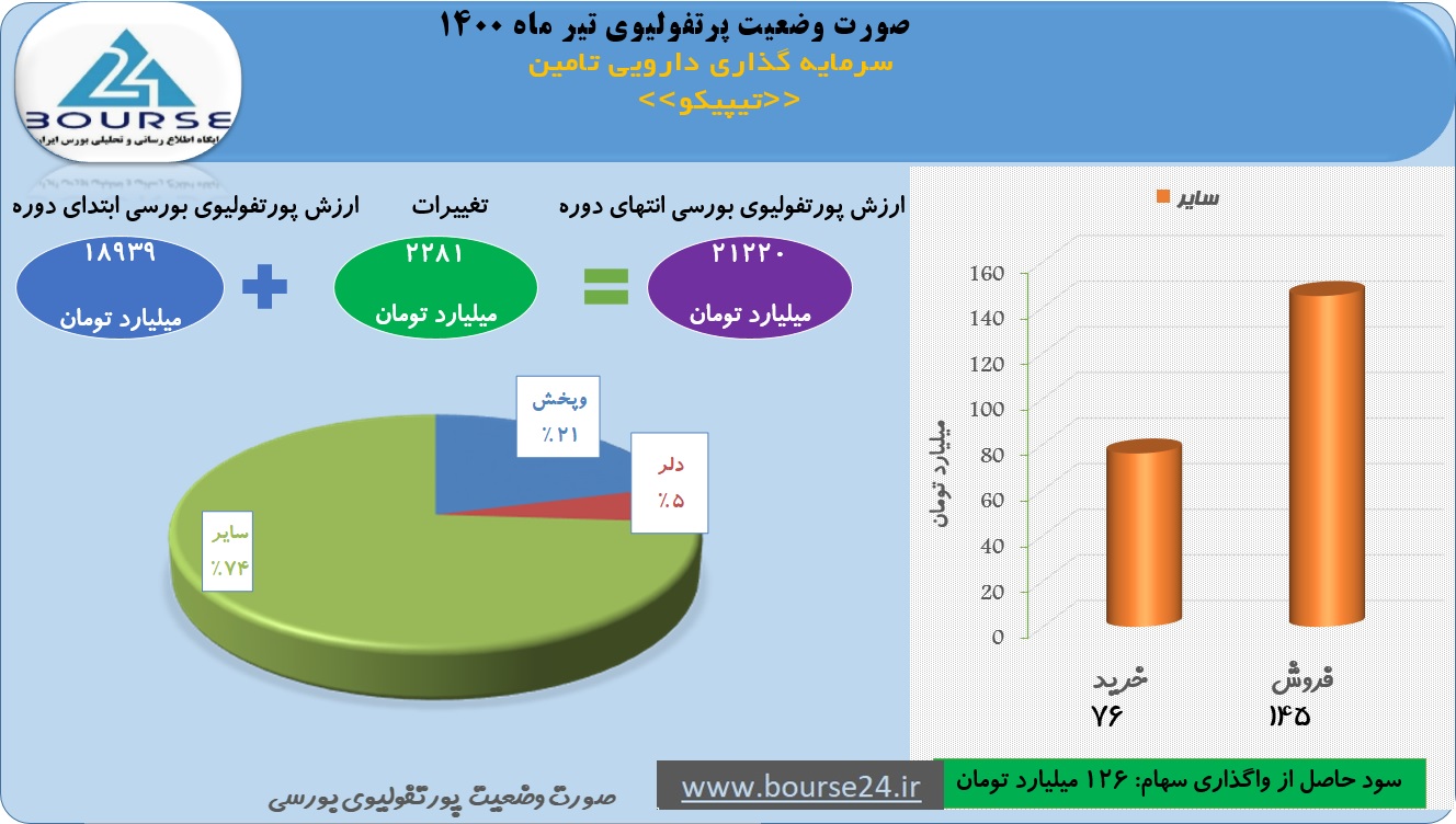 به گزارش کدال نگر بورس ٢۴،سرمایه گذاری دارویی تامین در تیر ١٢۶ میلیارد تومان سود کرد.