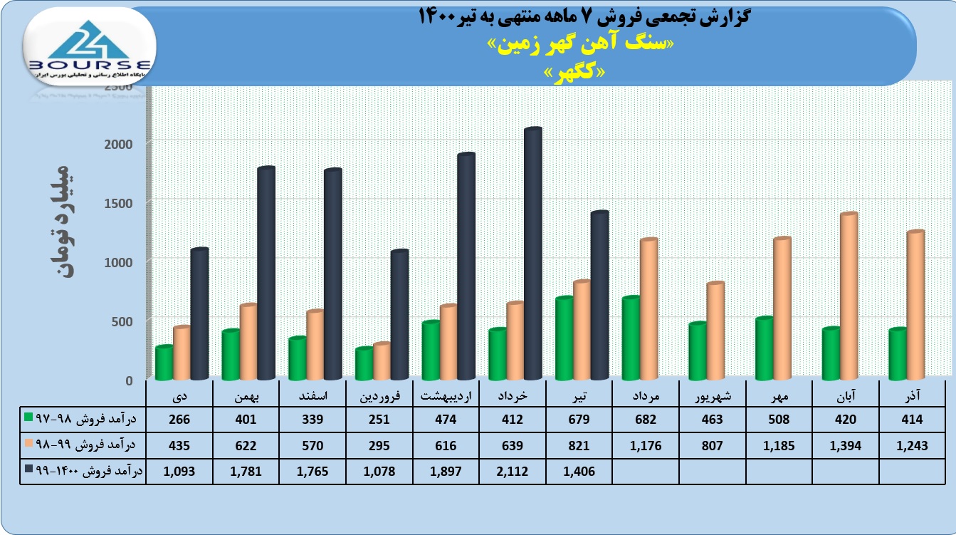 به گزارش کدال نگر بورس ٢۴، شرکت سنگ آهن گهر زمین در تیر ماه با کاهش شدید ٧٠٠ میلیارد تومان نسبت به خرداد ماه ١۴٠۶ میلیارد تومان محصول فروخت.
