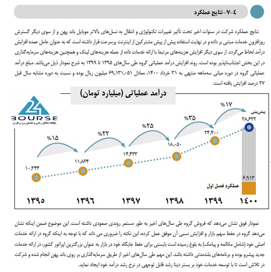 به گزارش کدال نگر بورس ٢۴، شرکت ارتباطات سیار ایران در گزارش تفسیری بودجه درآمدهای عملیاتی تلفیقی را ٢٨۶٣٢ میلیارد تومان اعلام کرده است که ۶٩١٣ میلیارد تومان در ٣ماهه نخست تحقق یافته است.درآمد های عملیاتی تلفیقی شرکت در سال ١٣٩٩ مبلغ ٢۴۴٠٠ میلیارد تومان بود که از سال ٩۵ تاکنون همواره سیر صعودی داشته است. توسعه زیرساخت ها و توانمندسازی حوزه دیجیتال ، توسعه سامانه همراه من ، توسعه خدمات حوزه محتوا و ...از طرح های مهم شرکت می باشد.
