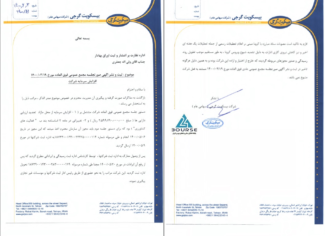 به گزارش کدال نگر بورس ٢۴، شرکت بیسکوئیت گرجی در خصوص آخرین وضعیت افزایش سرمایه شفاف سازی کرد.