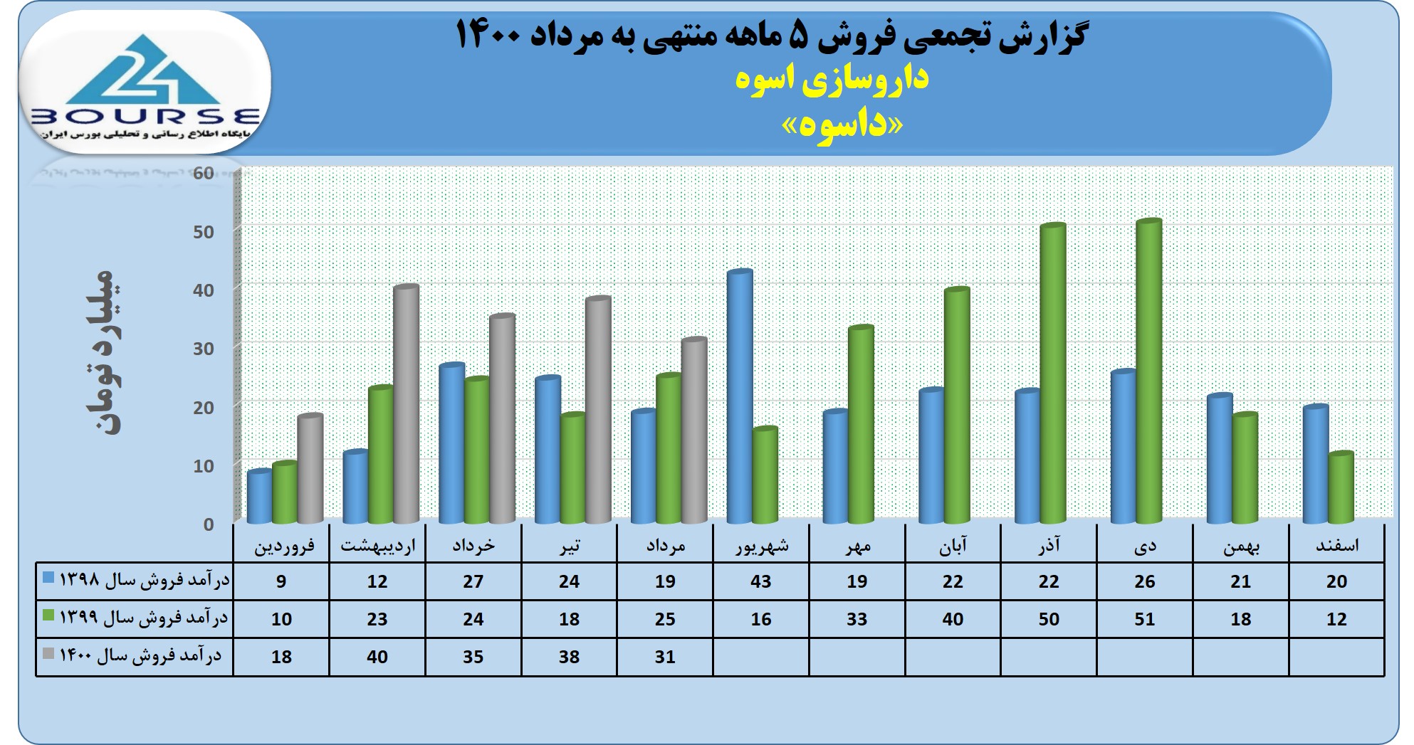 به گزارش کدال نگر بورس ٢۴، شرکت داروسازی اسوه در مدت ۵ ماهه منتهی به مرداد ١۴٠٠ حدود ١۶٣ میلیارد تومان درآمد از فروش محصولات خود به دست آورد.