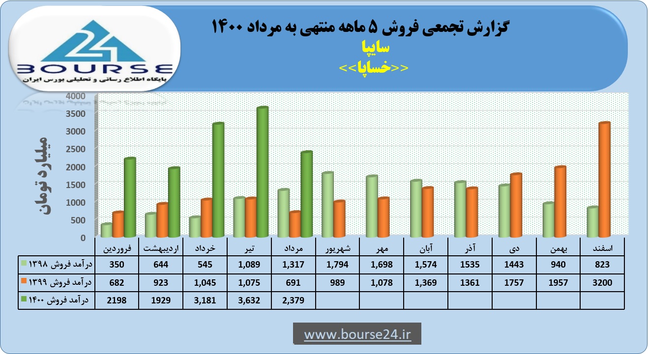 به گزارش کدال نگر بورس ٢۴ ، شرکت سایپا در ۵ماهه منتهی به مرداد از فروش محصولات خود ١٣٣١٩ میلیارد تومان درآمد کسب نمود که از این مبلغ ٢٣٧٩ میلیارد تومان آن مربوط به همین ماه می باشد. گفتنی است مبلغ فروش این شرکت در مدت ۵ ماهه در مقایسه با مدت مشابه سال قبل ٢٠٢ درصد رشد داشته است.