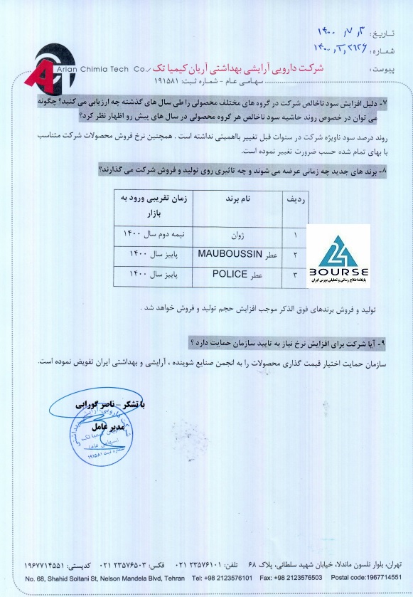 به گزارش کدال نگر بورس ٢۴، شرکت دارویی آرایشی بهداشتی آریان کیمیا تک اهم مطالب مطرح شده در کنفرانس اطلاع رسانی را منتشر نمود.
