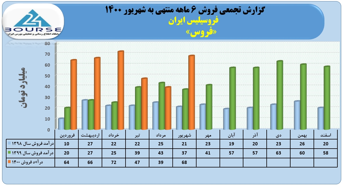به گزارش کدال نگر بورس ٢۴، شرکت فروسیلیس ایران در مدت ۶ ماهه نخست ١۴٠٠ حدود ٣۵٧ میلیارد تومان درآمد از فروش محصولات خود به دست آورد.