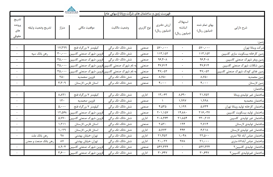 به گزارش کدال نگر بورس ٢۴، شرکت ویتانا لیست زمین و ساختمان خود را منتشر نمود.