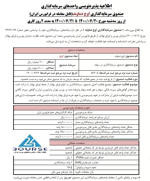 واحد های سرمایه گذاری صندوق سرمایه گذاری اوج دماوند پذیره نویسی می شود
